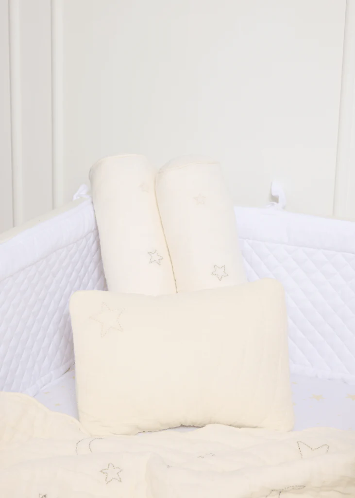 Personalise the blanket with your babies name to make even more speicial.The Pillow and Bolsters also feature beautiful hand embroidery and quilting.