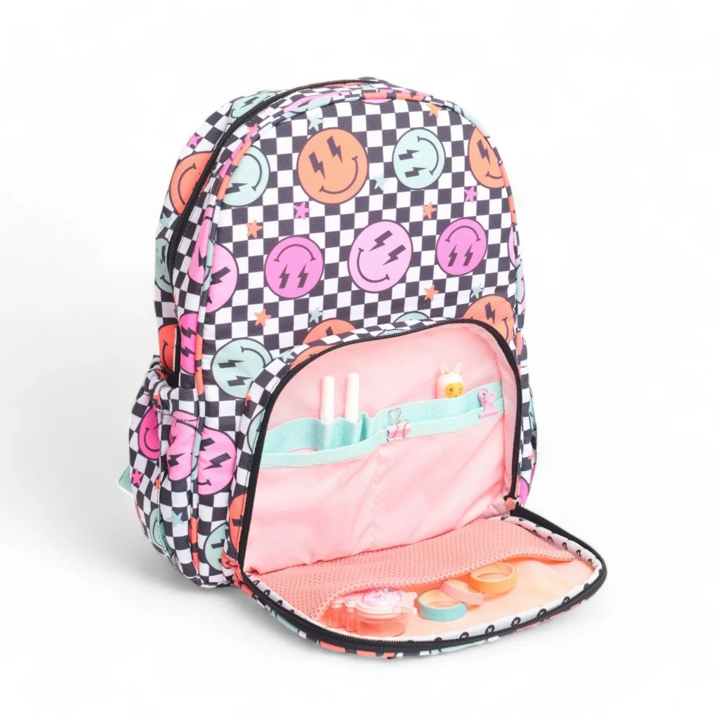 Let your child’s creativity shine with the Retro Smiley Faces Backpack! Covered in multiple cheerful smiley faces on a classic checkered background, this backpack is a fun, retro-inspired piece that celebrates the joy and imagination of childhood.